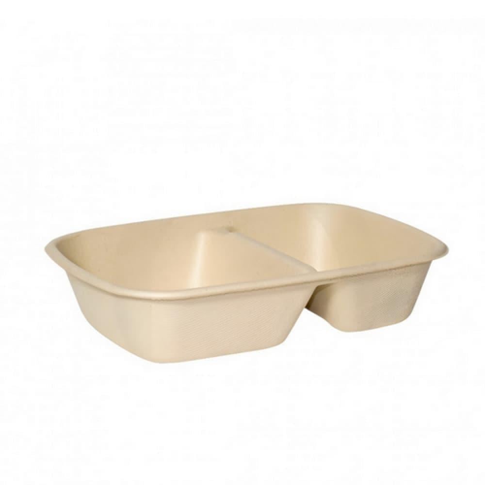 علبة طعام صحي مستطيلة للوجبات من قصب السكر بغطاء شفاف 1,000 مل