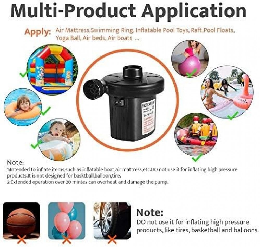 • تساعد مضخة الهواء الكهربائية في نفخ البالونات بسرعة كبيرة دون الحاجة إلى بذل أي جهد يدوي.